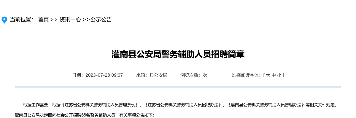 【2023年苏州市公安局相城分局招聘警务辅助人员60人公告 进入阅读模式】相关岗位:
