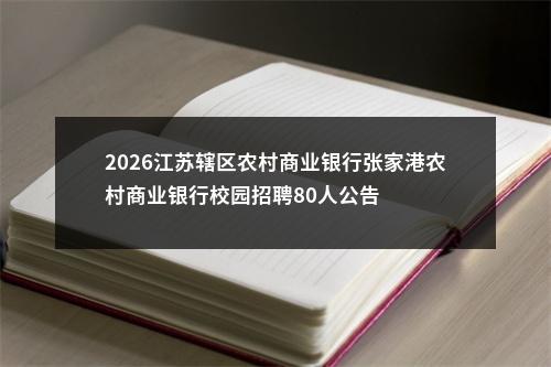 【2026江苏辖区农村商业银行张家港农村商业银行校园招聘80人公告 进入阅读模式】相关岗位: