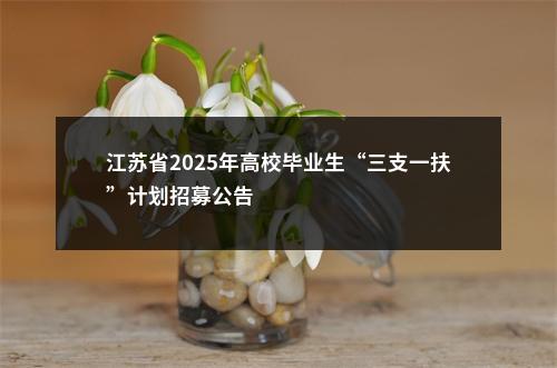 苏州三支一扶考试网 丨 进面分数查询 丨 公众号:苏州中公教育 丨 立即咨询 根据《中共中央组织部 人力资源社会保障部等十部门关于实施第四轮高校毕业生“三支一扶”计划的通知》(人社部发〔2021〕32号)《人力资源社会保障部办公厅 财政部办公厅关于做好2025年高校毕业生“三支一扶”计划实施工作的通知》(人社厅发〔2025〕21号)《省委组织部 省人力资源社会保障厅等八部门关于做好江苏省2025年高校毕业生“三支一扶”计划实施工作的通知》(苏人社发〔2025〕18号)要求,2025年我省将招募440名高校毕业生,安排到乡镇(街道)从事支教、支农、支医、帮扶乡村振兴、水利、就业和社会保障服务工作(以下简称“三支一扶”计划),服务期限为2年。现将有关事项公告如下: