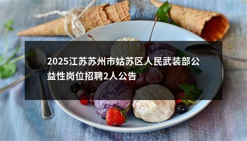 公众号:苏州中公教育 丨 立即咨询 苏州市姑苏区人民武装部因工作需要,拟面向社会公开招聘公益性岗位工作人员2名,现将有关事项公布如下: