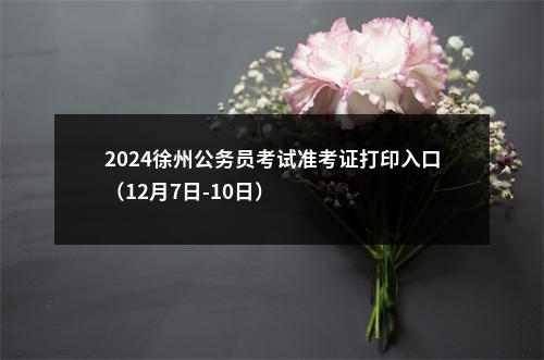 2024江苏公务员考试公告已经发布,准考证打印时间为:12月7日-10日,笔试时间为:12月10日,江苏省公务员考试频道为大家整理了:2024徐州公务员考试准考证打印入口(12月7日-10日)。更多江苏公务员考试信息请关注:江苏公务员考试频道。