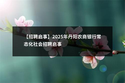 原标题:【招聘启事】2025年丹阳农商银行常态化社会招聘启事